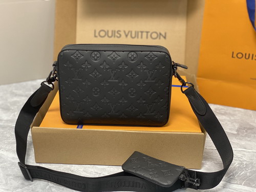 M46602 Black Full Leather Men's Bag Trio モノグラム・エンボス加工を施した牛革を使用したメッセンジャーバッグ「トリオ」。 取り外し・調節可能なジャカード織りのショルダーストラップにはブランドロゴ入り。 詳細サイズ25 x 18.5 x 7cm (L x H x W)D