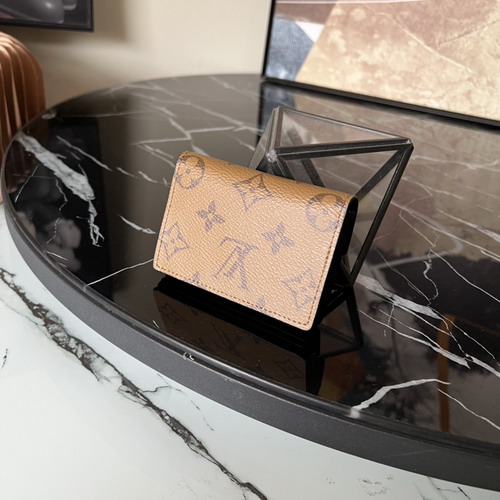 M81855イエロー・フラワー♡モノグラム・キャンバス製で、フラップにはモノグラム・リバース・キャンバスを使用。 内側は5つのスナップ・パネルに分かれており、カードや小物を収納できます。 ゴールドカラーのプレススタッズで開閉。 サイズ: 10 x 6.8 x 1.4 cm